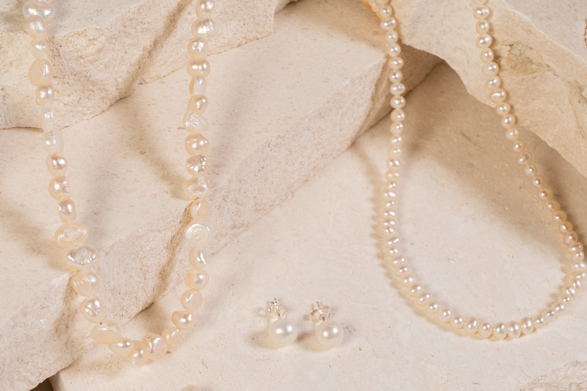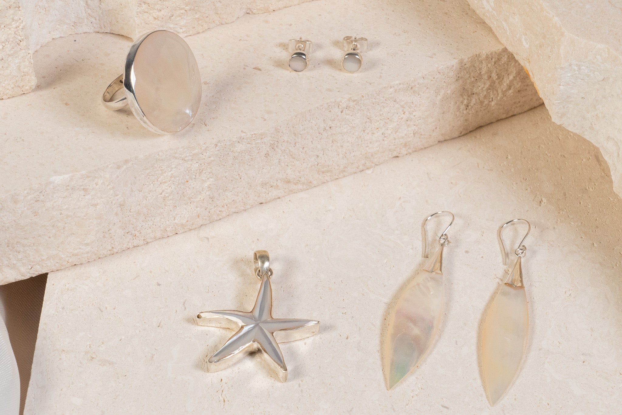 Es un material natural que se encuentra en el interior de las conchas de ciertos moluscos, como las ostras. Se forma a partir de capas de carbonato de calcio y proteínas, lo que le confiere su característico aspecto. Es conocido por su elegancia y suavidad. Lo utilizamos en nuestras joyas para añadir un toque de elegancia y finura, creando combinaciones ideales.